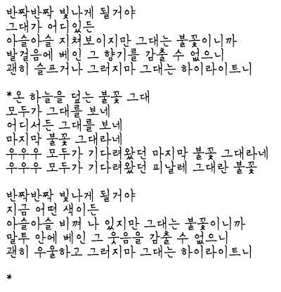 As a student of English literature, I enjoy reading in depth, and the poetic expressions in these songs often amaze me. I hope this aspect of the issues will interest people who are learning Korean and encourage people who intend to learn Korean.